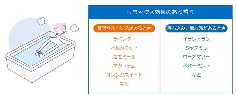 40℃くらいのぬるめのお風呂に30分くらい時間をかけてゆっくりつかると、体の表面の血行が良くなり、深部体温が放散されやすくなります。これによって、徐々に深部体温が下がり、眠りにむけて準備が整っていきます。リラックス効果のある香りの入浴剤などを使うとよいでしょう。