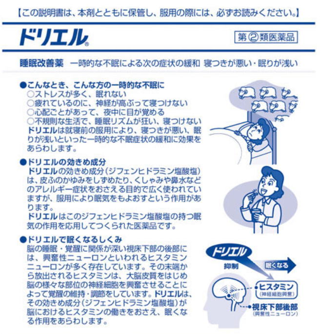 調節をしています。ドリエルは、その効きめ成分(ジフェンヒドラミン塩酸塩)が