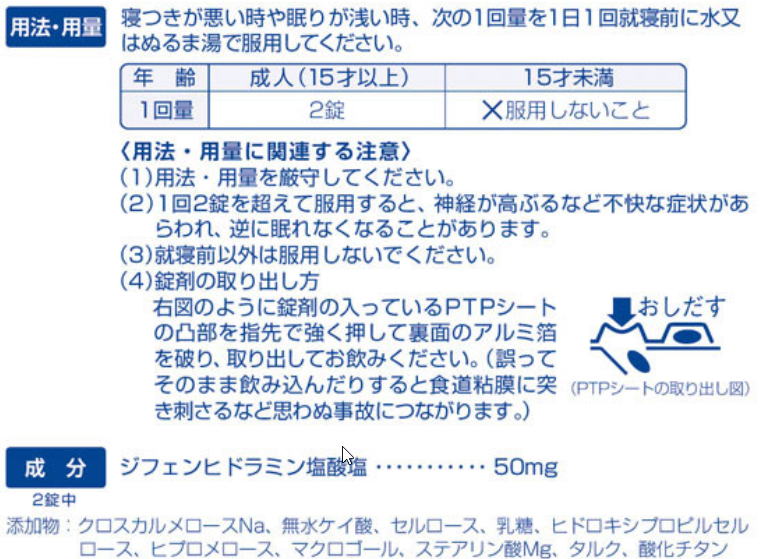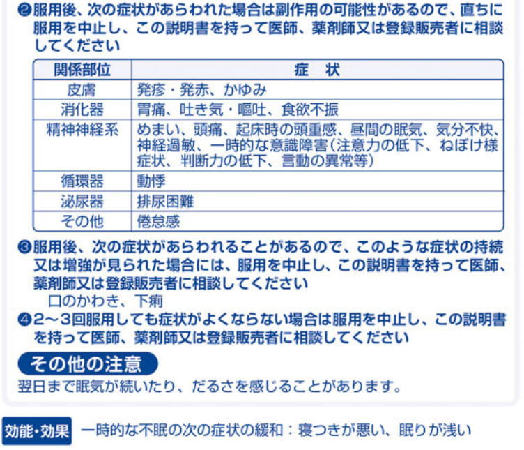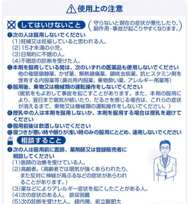 6.寝つきが悪い時や眠りが浅い時のみの服用にとどめ、連用しないでください