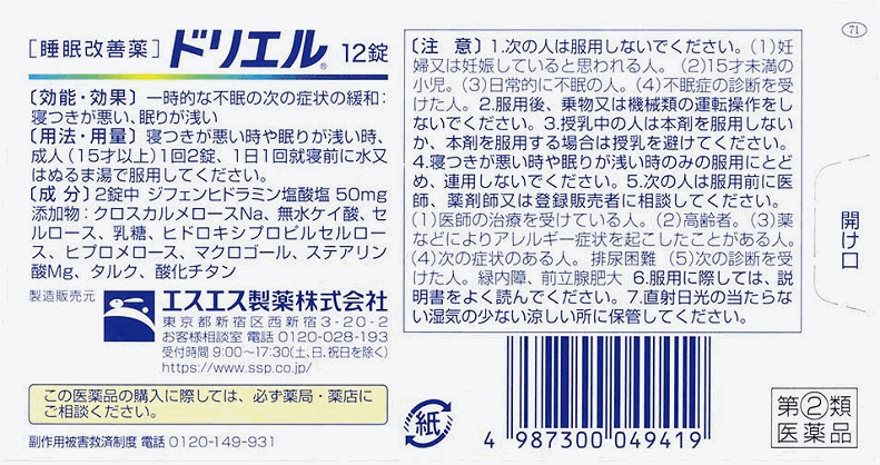 ドリエルは就寝前の服用により、寝つきが悪い、眠りが浅いといった一時的な不眠