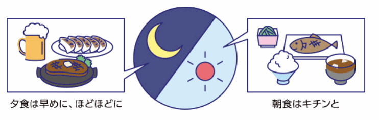 規則正しい食事:朝食はしっかり、夕食は就寝2時間前までに