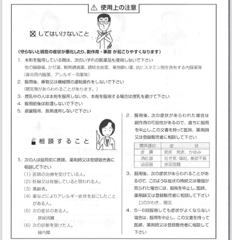 4.5~6回服用しても症状がよくならない場合は、服用を中止し、この文書を持っ