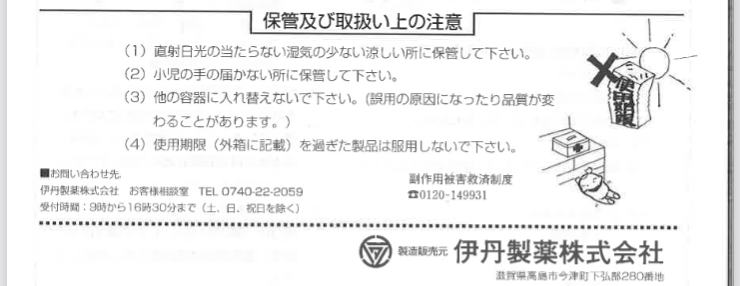 (4)使用期限(外箱に記載)を過ぎた製品は服用しないで下さい。