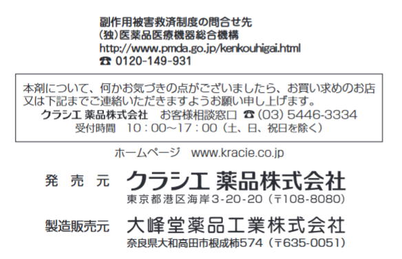 添加物:ヒドロキシプロピルセルロース、乳糖、ポリオキシエチレンポリオキシプロピレングリコール